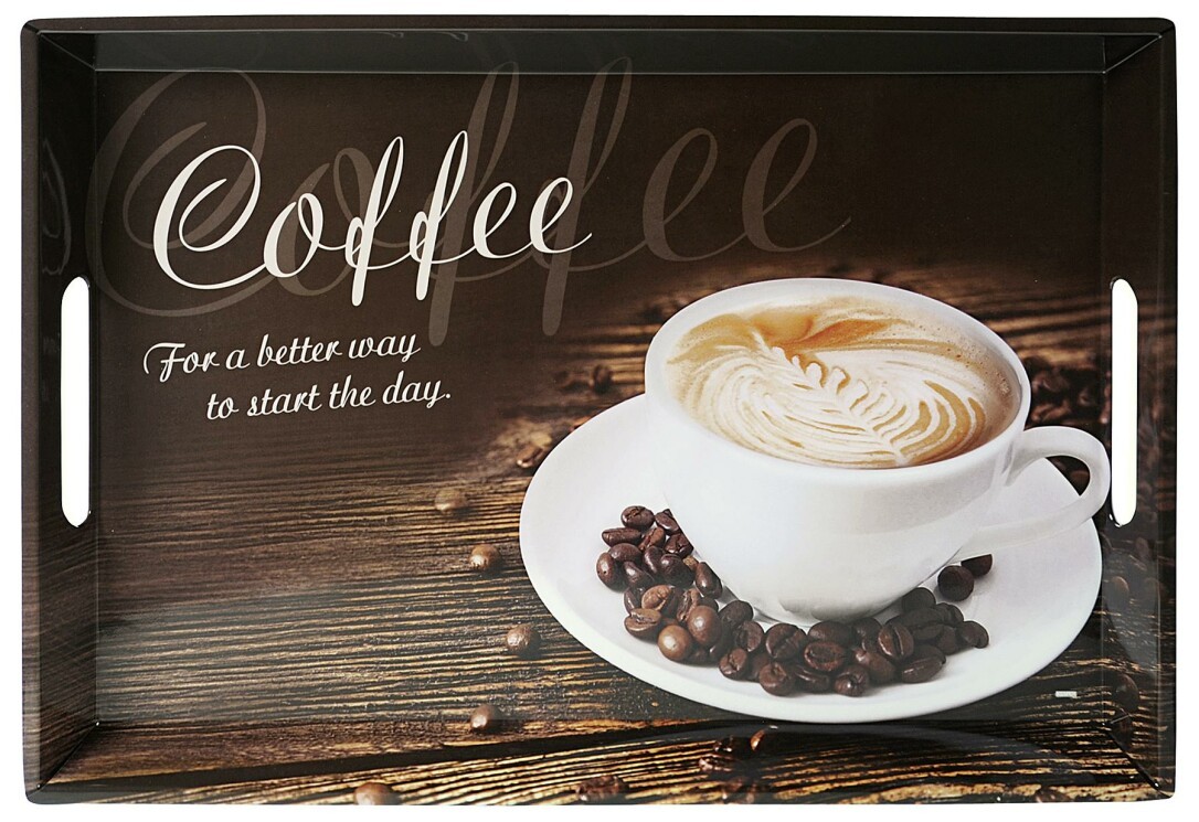 Serviertablett, Motiv: Coffee, aus hochwertigem Melamin, kratzfest und mit extra hohem Rand, Maße: 50 x 35 x 4,5 cm