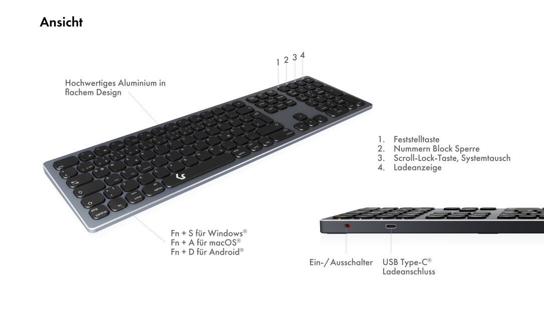 KeySonic Full-Size Aluminium TAS, anthr/BK, KSK-8023BTRF(DE) (60939)