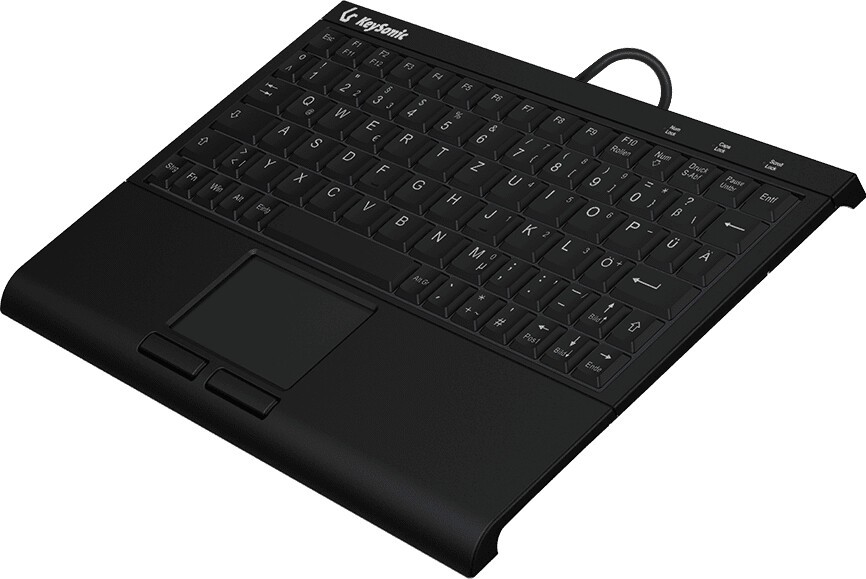 KeySonic KSK-3211ELU (DE), Super-Mini Tastatur, Hintergrundbeleuchtung, Touchpad, schwarz, Kabelgebunden, USB, Membran Key Switch, QWERTZ, LED, Schwarz
