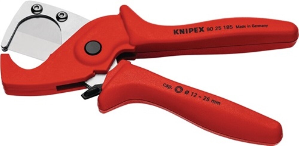 Knipex 90 25 185. Produkttyp: Rohrschneider, Material Messer: Stahl, Material: Kunststoff. Länge (mm): 18,5 cm, Gewicht: 175 g