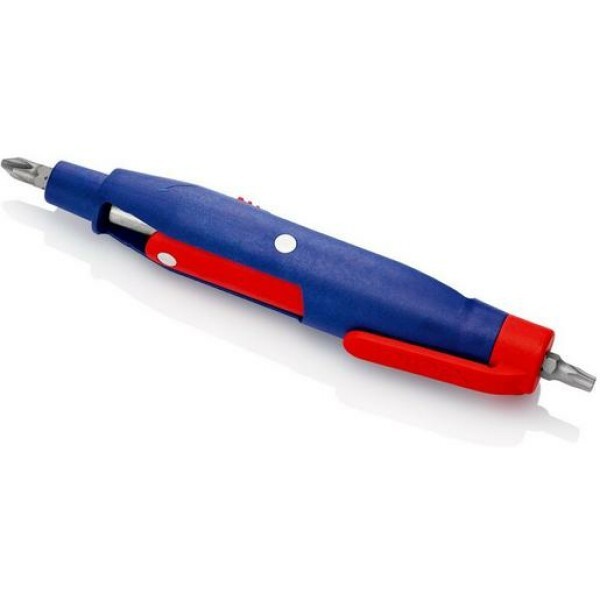 Transportfreundlicher Schaltschrank-Schlüssel in Kugelschreiberform mit Befestigungsclip zur sicheren Aufbewahrung. Durch Ausschwenken des Schlüsselträgers können vier verschiedene Schlüsselprofile nutzbar gemacht werden. Für Schaltschränke, Absperrsysteme der Gas-, Wasser- und Elektrizitätsversorgung. Für technische Anlagen in Gebäuden wie Klima- und Belüftungsanlagen, Absperrventile, Netzschalttafeln usw. Universelle 1/4 -Bitaufnahme für handelsübliche Bits (Dauermagnet zur Fixierung). Zusätzliche Bitaufnahme für 1/4 -Bits in einem Schlüsselprofil. Mit 2 Wendebits: Kreuzschlitz PH / Schlitz 7,0 x 1,2 mm und TX20 / TX25. Werkzeugkörper: Kunststoff, glasfaserverstärkt. Schlüsselprofile: Zink-DruckgussBefestigungsclip zur sicheren Aufbewahrung. Für Schaltschränke, Absperrsysteme der Gas-, Wasser- und Elektrizitätsversorgung. Für technische Anlagen in Gebäuden wie Klima- und Belüftungsanlagen, Absperrventile, Netzschalttafeln usw. Transportfreundlicher Schaltschrank-Schlüssel in Kugelschreiberform mit Befestigungsclip zur sicheren Aufbewahrung. Durch Ausschwenken des Schlüsselträgers können vier verschiedene Schlüsselprofile nutzbar gemacht werden. Universelle 1/4 -Bitaufnahme für handelsübliche Bits (Dauermagnet zur Fixierung). Zusätzliche Bitaufnahme für 1/4 -Bits in einem Schlüsselprofil. Mit Bit: Kreuzschlitz PH2 und Aufbewahrungsmöglichkeit für einen zweiten Bit. Corpus und Clip aus Kunststoff- Schlüsselträger und Schlüsselprofile aus Zink-Druckguss.