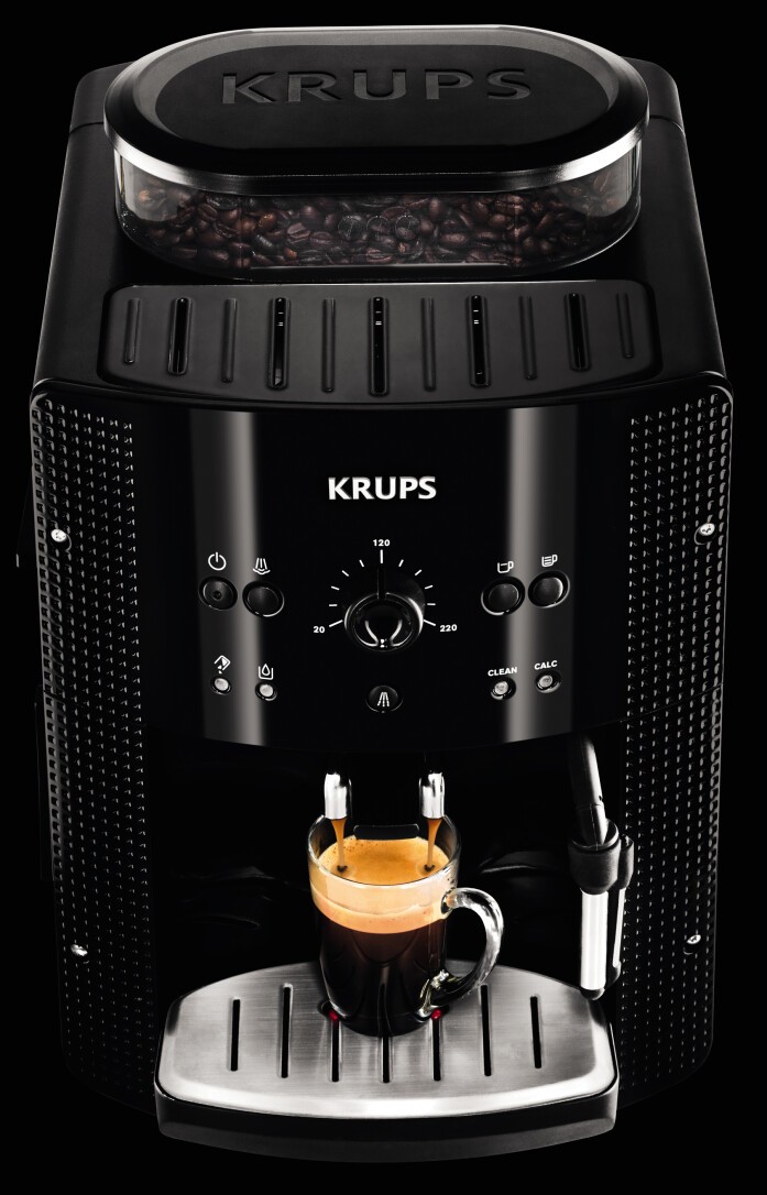 Farbe: schwarz • Pumpendruck: 15bar • Fassungsvermögen Wassertank: 1.6l, mit integriertem Wasserfilter • Fassungsvermögen Bohnenbehälter: 275g • Fassungsvermögen Kaffeesatzbehälter: 9 Portionen • Display: nein, Drehregeler • Mahlwerk: 3-stufig einstellbares Kegelmahlwerk • Milchsystem: nein • Kaffeemenge: stufenlos einstellbar • Wassermenge: stufenlos einstellbar • Kaffeetemperatur: stufenlos einstellbar • Ausstattung: variables Brühsystem 6-9g, Heißwasserfunktion, Dampfdüse (Cappuccinatore), höhenverstellbarer Kaffeeauslauf 60-105mm, programmierbare Einschalt- und Ausschaltzeit • Reinigung: automatisches Reinigungs- und Entkalkungsprogramm • Festwasseranschluss: nein • Leistung: 1450W