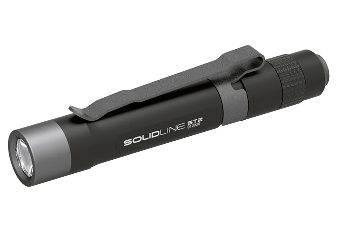 Ein zuverlässiges Licht für viele Alltagsanwendungen bietet die Solidline ST2. In ihrem robusten Gehäuse aus Aluminiumsorgt eine AAA-Alkaline-Batterie für Energie. Sie funktioniert aber auch mit einem wiederaufladbaren NiMH-Akku. Durchihre geringe Größe und ihren effizienten Licht-Output ist die preisbewusste ST2 die ideale Begleitung in jeder Handtascheund sorgt für ausreichend Beleuchtung, wo immer sie gebraucht wird.