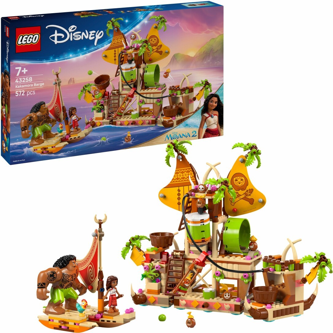 Das LEGO # Disney Vaiana 2 Kakamora-Barge (43258) Bauset bietet Kindern und Fans ab 7 Jahren, die die Filme mit der Disney Heldin Vaiana lieben, spannende Abenteuer auf hoher See. Das Set beinhaltet ein großes Spielzeugboot aus dem Disney Film Vaiana 2: eine Barge mit Katapult, geheimen Verstecken, einer Schatztruhe und einer Seilrutsche. Außerdem lässt sich die Barge in 3 kleinere Boote zerteilen. Darüber hinaus enthält das Spielset ein Doppelrumpf-Kanu mit versteckter Kiste. 9 Disney Minifiguren Vaiana, Maui, der Hahn Heihei, Kotu (der Held der Kakamora) und 5 weitere Kakamora erwecken das Bauspielzeug für Mädchen und Jungen zum Leben. Dieses Bau- und Spielset zum Disney Film Vaiana 2 ist ein tolles Geschenk für Kinder und Erwachsene, die große Freude daran haben werden, die Barge genau wie im Film in 3 Boote zu zerteilen. Das Modell lässt sich auch wunderbar mit anderen separat erhältlichen LEGO Bausets und LEGO Spielzeugen kombinieren. Darüber hinaus bietet die LEGO Builder App ein ebenso leichtes wie intuitives Bauerlebnis. In der App können Kinder 3D-Ansichten der Modelle vergrößern und drehen, Sets speichern und den Baufortschritt verfolgen. Die Kakamora-Barge zum Film Vaiana 2 ist 22 cm hoch, 29 cm lang und 14 cm breit. Enthält 572 Teile.