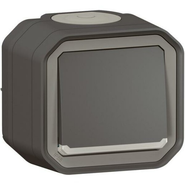Plexo New Feuchtraum-Aufputz Taster beleuchtet 10 A, Steckklemmen (SL), IP 55, IK 08, in der Farbe: Anthrazit.