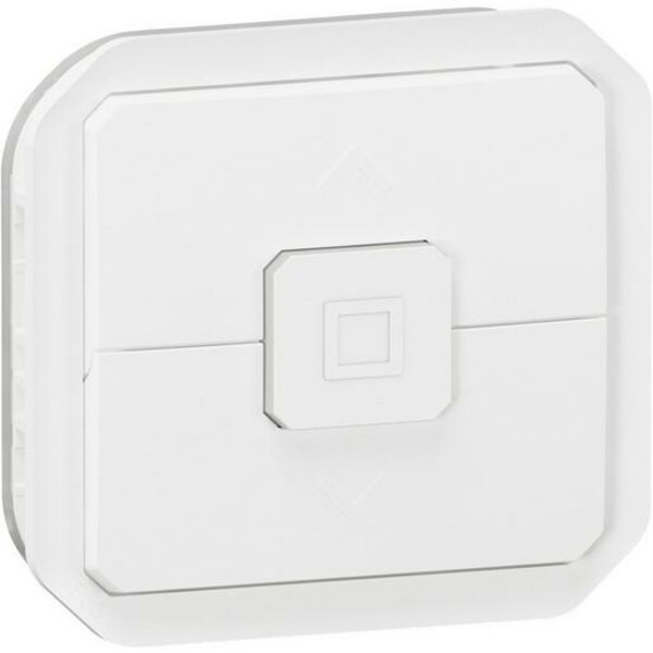 Plexo New Einsatz Rollladenschalter mit elektrischer und mechanischer Verriegelung 6 AX - 250 V - 500 W max., in der Farbe: Ultraweiß. Einsätze müssen in einem Tragring (Unterputzrahmen ) oder einem Aufputzgehäuse installiert werden.