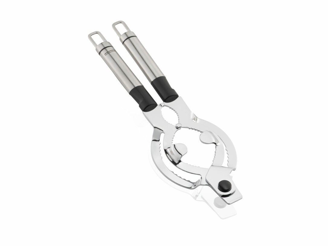 Mit dem Deckelöffner aus der Edelstahl-Serie von Leifheit lassen sich Deckel von Flaschen, Gläsern, Tuben und Co. leicht öffnen. Der Multi-Deckelöffner überzeugt vor allem mit seiner einfachen, unkomplizierten Handhabung. Da die Griffe eine ovale Form haben, liegen diese besonders gut in der Hand. Wer den Deckelöffner für Schraubgläser kauft, der kann diese folglich mühelos öffnen. Selbstverständlich besticht der praktische Küchenhelfer auch in puncto Optik. Denn die hochwertige Verbindung aus Edelstahl und schwarzem Kunststoff machen ihn zu einem stilvollen Design-Highlight in der Küche. Besonders gut macht sich der Deckelöffner aus der Edelstahl-Serie von Leifheit an einer Hakenleiste. Dort ist es stets griffbereit und platzsparend verstaut.