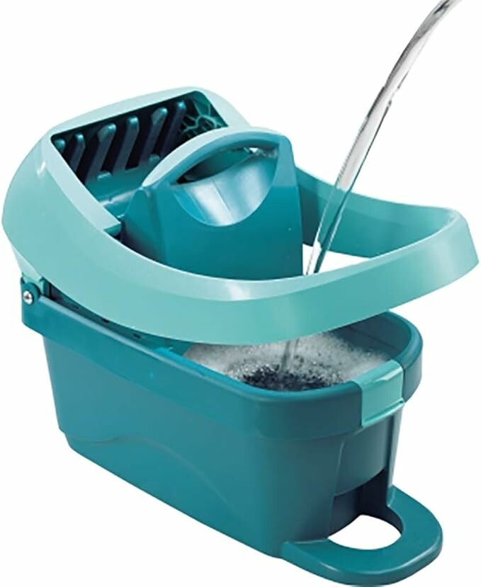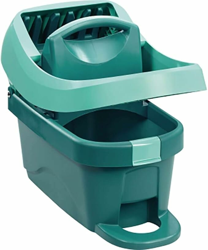 Mit Pressaufsatz, der sich einfach und bequem per Fußdruck bedienen lässt. Und so funktioniert es: Der Wischbezug wird per Fußbedienung vom Bügel gelöst und in die Presse gelegt, anschließend wird ebenfalls per Fußdruck die Presse betätigt. Fertig. Ohne die Hände ins Schmutzwasser tauchen und ohne sich bücken zu müssen, ist der Wischbezug so trocken wie handgewrungen. Wird die Wischtuchpresse nicht gebraucht, kann der Pressaufsatz abgenommen und im Eimer aufbewahrt werden. So passt der Eimer Platz sparend in Schränke und Regale. Beim nächsten Gebrauch die Presse einfach aufsetzen, einrasten und fertig. Zum Transport des Eimers während des Putzens ist der Pressaufsatz mit einem praktischen Griff ausgestattet. Gründliche Reinigung für Fliesen und Steinböden.