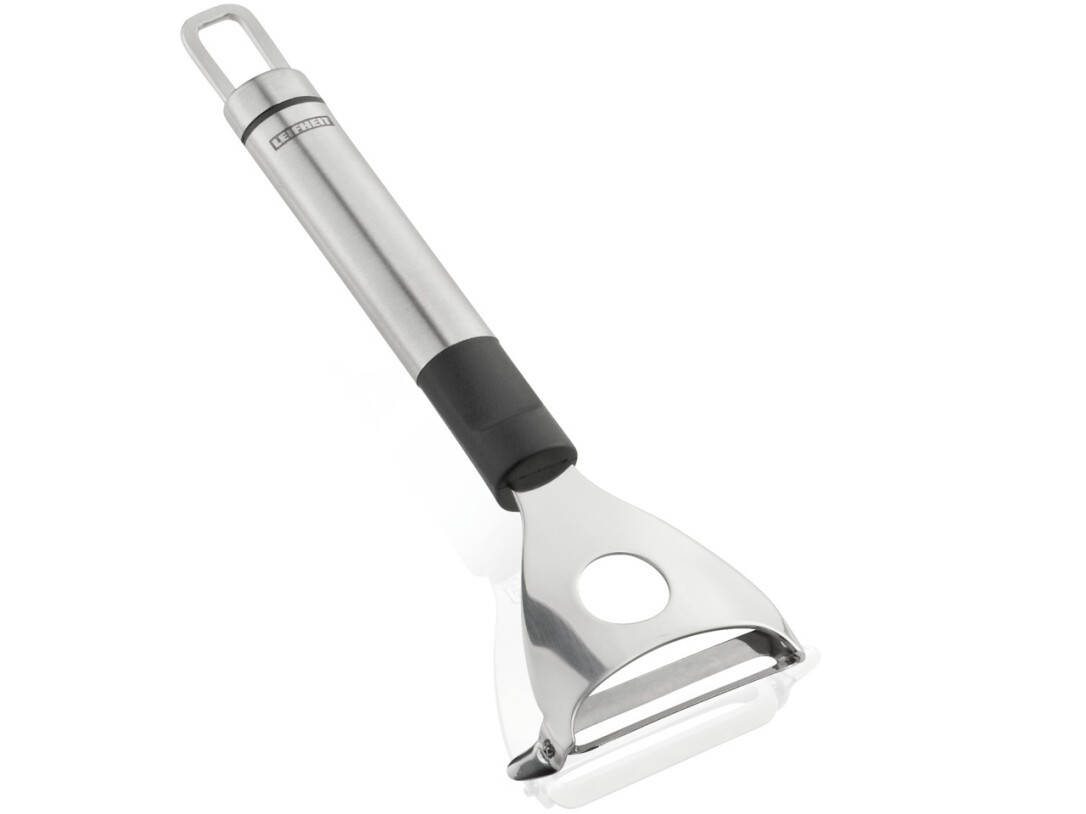 Schick, schlicht und elegant so präsentieren sich die Leifheit Küchenhelfer aus der Serie ProLine. Die hochwertige Verbindung von Edelstahl und schwarzem Kunststoff ist ein Design-Highlight in jeder Küche, bei der auch die Handhabung überzeugt: Die bewegliche Klinge schält Kartoffeln, Gemüse und Gurken extra dünn. Der oval geformte Griff des ProLine Y-Sparschälers liegt gut und sicher in der Hand. Der hochwertige Edelstahl gibt eine angenehme Stabilität. Mit praktischer Aufhängeöse für die separat erhältliche ProLine Hakenleiste.