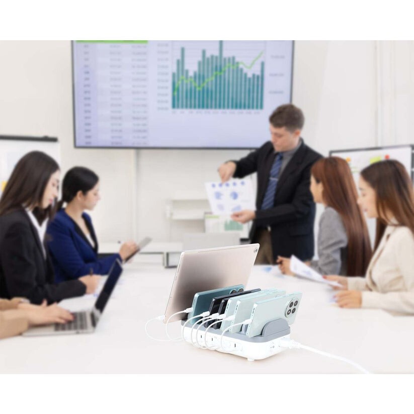 Manhattan 102766. Aufladetyp: Drinnen, Energiequelle: AC, Aufladekompatibilität: Handy, Smartphone, Tablets. Eingangsspannung: 100 - 240 V. USB Typ-C Anzahl Anschlüsse: 10, Schnellladung, Energieschutzeigenschaften: Überlastschutz, Charge overcurrent, Überhitzung, Überspannung. Kabellänge: 1,5 m, Produktfarbe: Weiß, Grau