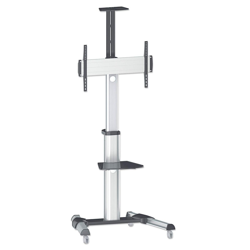 Manhattan Universal Multimedia TV-Ständer auf Rollen, Für Bildschirme von 37" bis 70"* und bis zu 50 kg, -12 ~ 5° neigbar, 90° schwenkbar, Kamerahalterung und AV-Fachboden abnehmbar, schwarz/silber. Höchstgewichtskapazität: 50 kg, Minimum Bildschirmgröße: 94 cm (37"), Maximale Bildschirmgröße: 177,8 cm (70"), Minimale VESA-Halterung: 200 x 200 mm, Maximale VESA-Halterung: 600 x 400 mm. Höhenverstellung, Neigungswinkelbereich: -12 - 5°. Produktfarbe: Schwarz, Silber