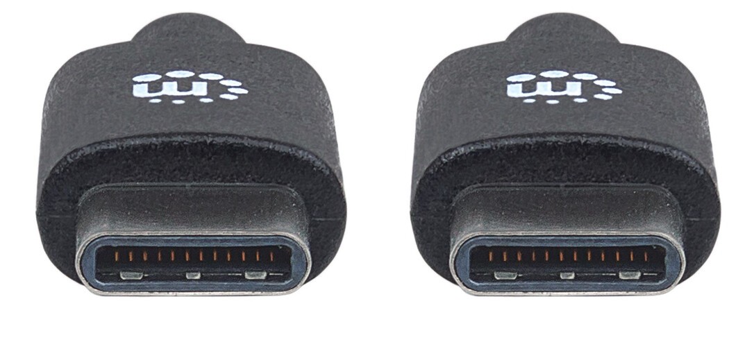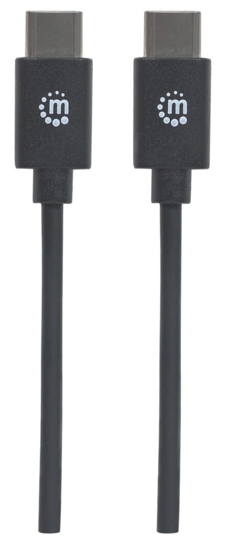 Manhattan USB 2.0 Typ C-Kabel, Typ C-Stecker auf Typ C-Stecker, 480 Mbit/s, 2 m, schwarz, 2 m, USB C, USB C, USB 2.0, 0,48 Gbit/s, Schwarz