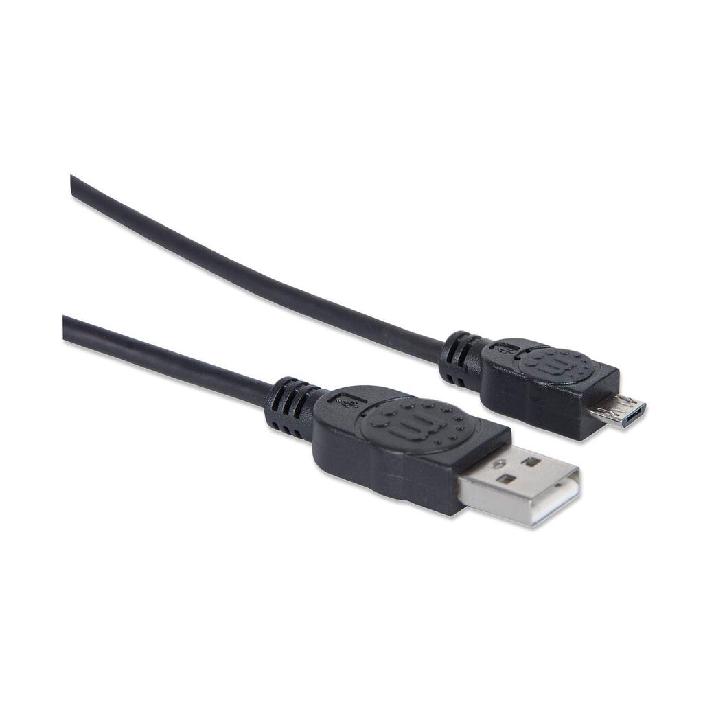 Manhattan Hi-Speed USB Micro-B Anschlusskabel, USB 2.0, Typ A Stecker - Micro-B Stecker, 480 Mbps, 1,8 m, Schwarz, 1,8 m, USB A, Micro-USB B, USB 2.0, Männlich/Männlich, Schwarz