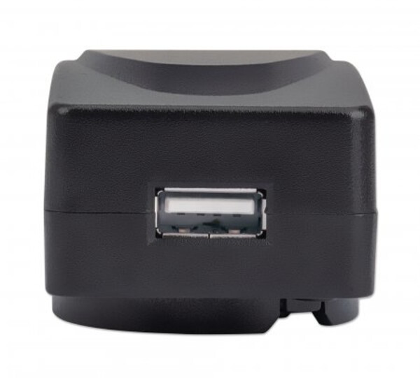 Manhattan USB-Ladegerät und Reiseadapter, Geeignet für Europa, UK, USA und Australien, ein USB-A-Ladeport lädt mit bis zu 1 A, schwarz, Drinnen, AC, 5 V, Schwarz