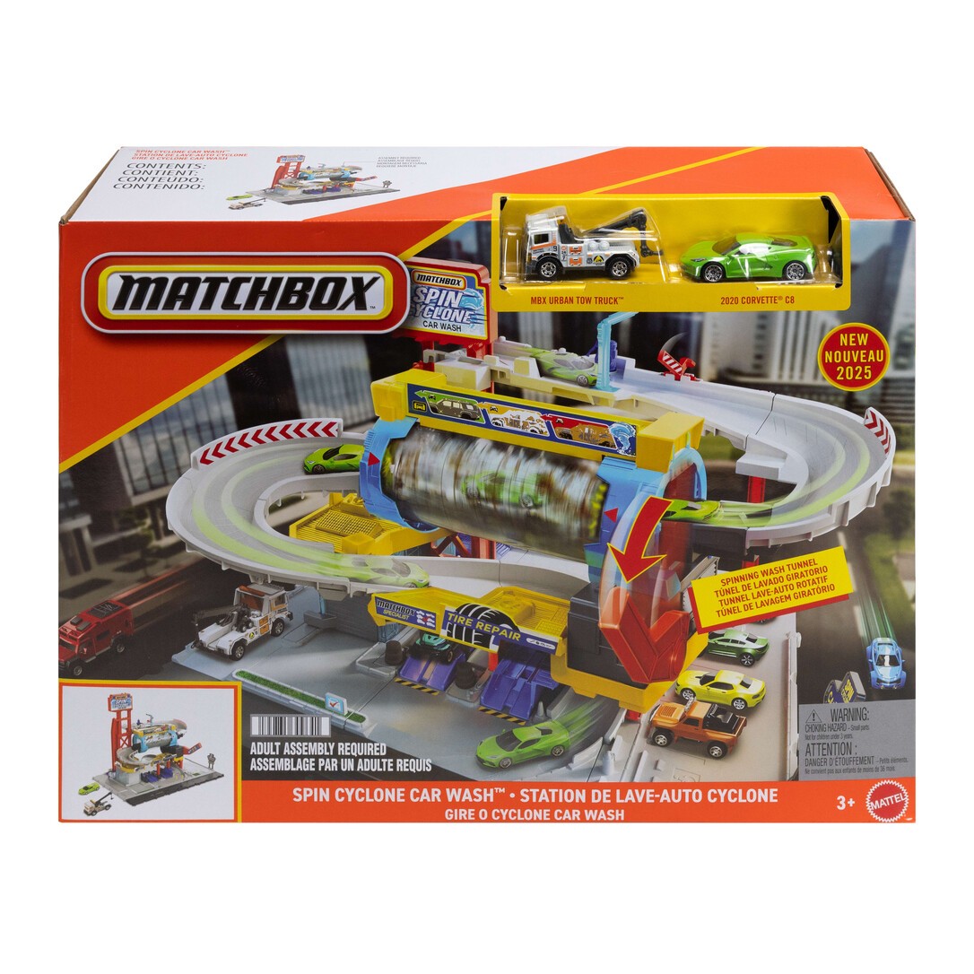 Mattel Matchbox Spielset Rotierende Waschstraße mit Die-Cast-Corvette und Abschleppwagen