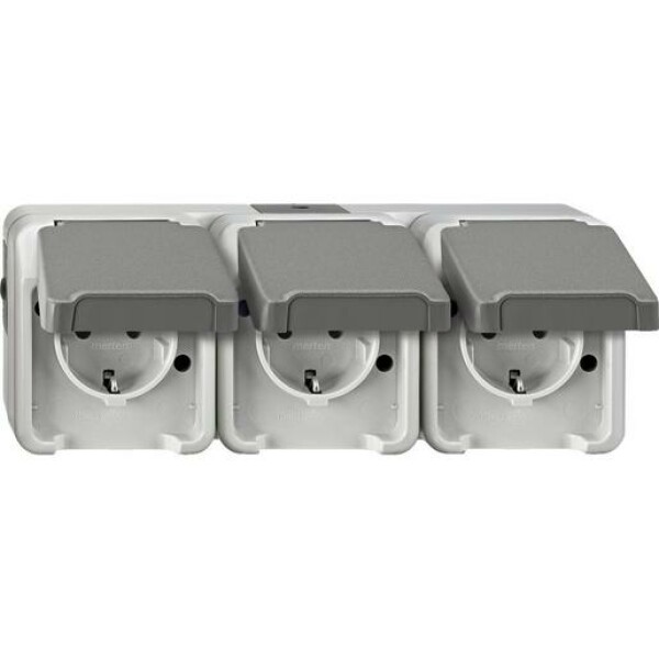 Für Auqastar. Schuko-Dreifach-Steckdose, waagerecht angeordnet, 16 A, AC 250 V, DIN 49440. Beschriftbar mit Schriftfeld?Einsatz. Die Sockel sind miteinander verdrahtet. Mit 5 Leitungseinführungen. Die Einsätze sind beliebig austauschbar gegen andere Geräte des AQUASTAR?Programms. Aufputz-Montage. Mit Steckklemmen.