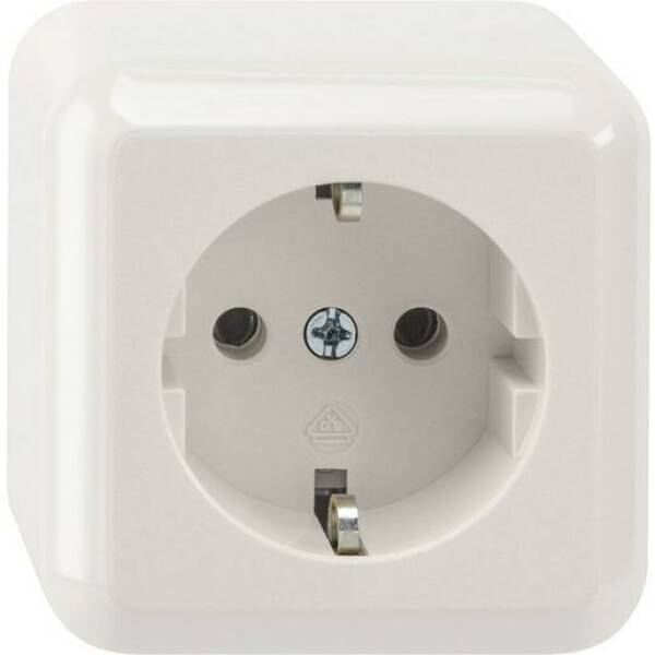 Schuko-Steckdose für Aufputz-Montage, mit Schraubbefestigung und Steckklemmen.
