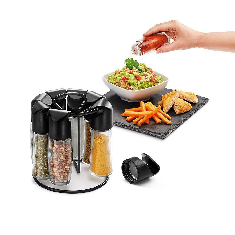 mit 8 luftdicht verschließbaren Glas-Behältern (4 x 88 ml, 4 x 72 ml) und 16 austauschbaren Streueinsätzen, Drehscheibe mit Griff, Deckel aus Kunststoff