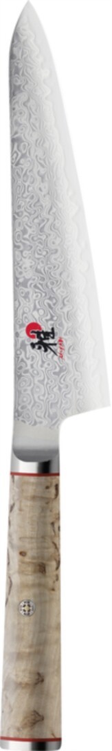 Japanische Messer sind nicht nur überaus scharf, sie sind auch optisch ansprechende Küchenwerkzeuge, die auf keinen Fall in Ihrer Messerkollektion fehlen sollten. Das Shotoh aus der Serie 5000 MCD von MIYABI schneidet mit seiner 14 cm langen scharfen Klinge Wurst, Käse und Gemüse in perfekte Scheiben. Aber auch Fleisch und Fisch lassen sich mit dem MIYABI 5000 MCD Shotoh in kleine Stücke zerteilen. Das Messer besteht aus einem hochwertigen MicroCarbide-Pulverstahl MC63-Kern, der von 100 Lagen Stahl umgeben ist. Dadurch entsteht auf jeder Klinge ein individuelles „Flower-Damastmuster“. Jedes Shotoh wird in Seki, Japan, mit dem klassischen Honbazuke-Abzug geschärft, was zu einer besonderen Schärfe führt, die mühelos durch das Schneidgut gleitet. Zusätzlich wurde die CRYODUR Klinge in dem speziell entwickelten Verfahren gehärtet. Neben der einzigartig gemusterten Klinge ist auch der Griff aus bester Masur-Birke ein optisches Highlight: Nicht nur die Maserung ist ein Hingucker – der Look des Holzgriffes wird abgerundet durch einen edlen Mosaik-Pin.