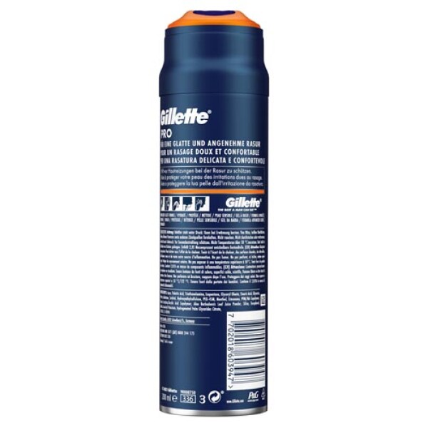 Entdecken Sie das Gillette PRO Rasiergel für Männer für eine mühelose und angenehme Rasur. Es schäumt sofort zu einem reichhaltigen Rasierschaum auf, der Ihnen hilft, die gewünschte gründliche Rasur zu erzielen. Die fortschrittliche Gleit-Formel hilft, empfindliche Haut vor Hautreizungen zu schützen und Ihr Barthaar mit Feuchtigkeit zu versorgen. Verwenden Sie das Gillette Pro Rasiergel zusammen mit einem Gillette Rasierer für beste Ergebnisse, sowie unglaublichen Komfort und Gründlichkeit.
