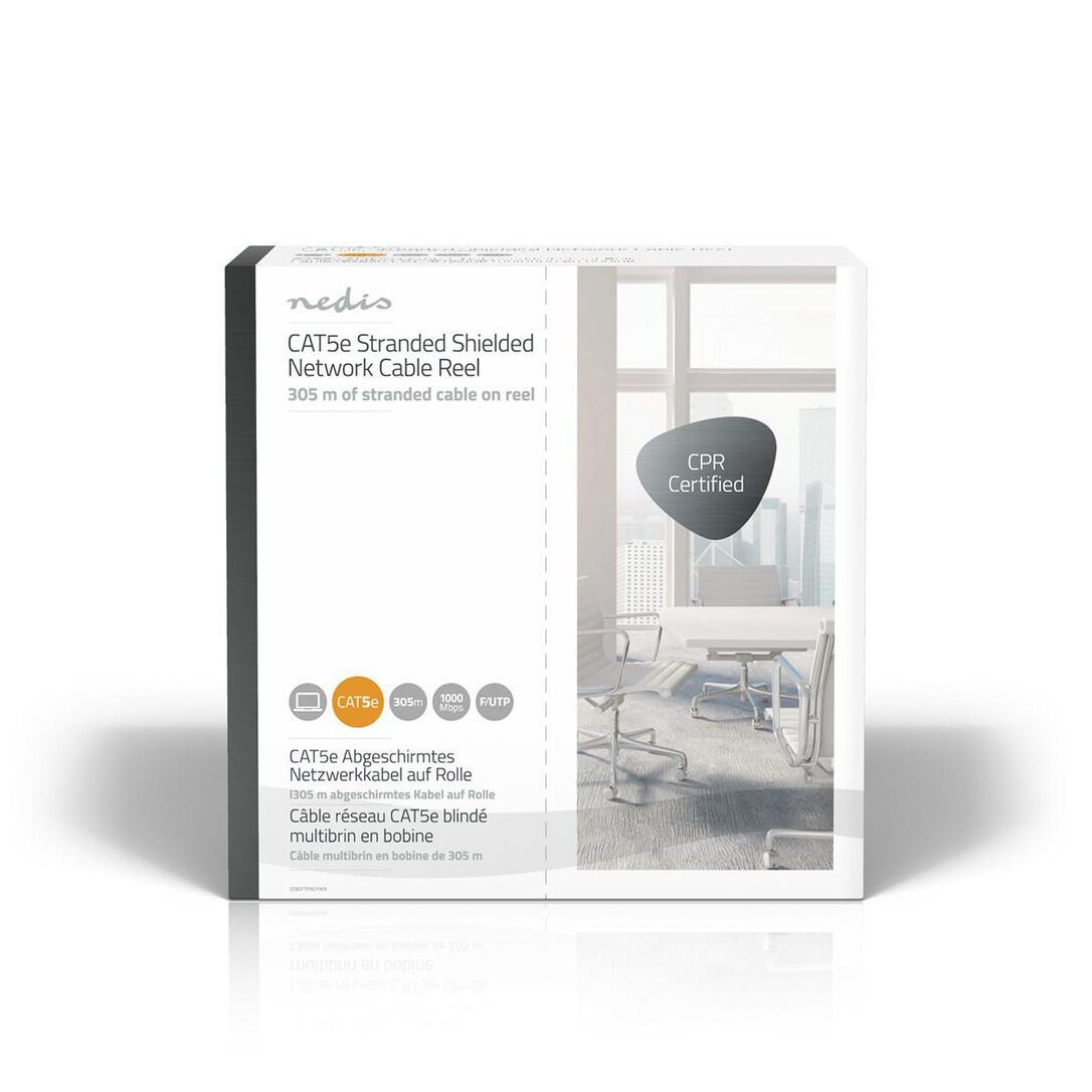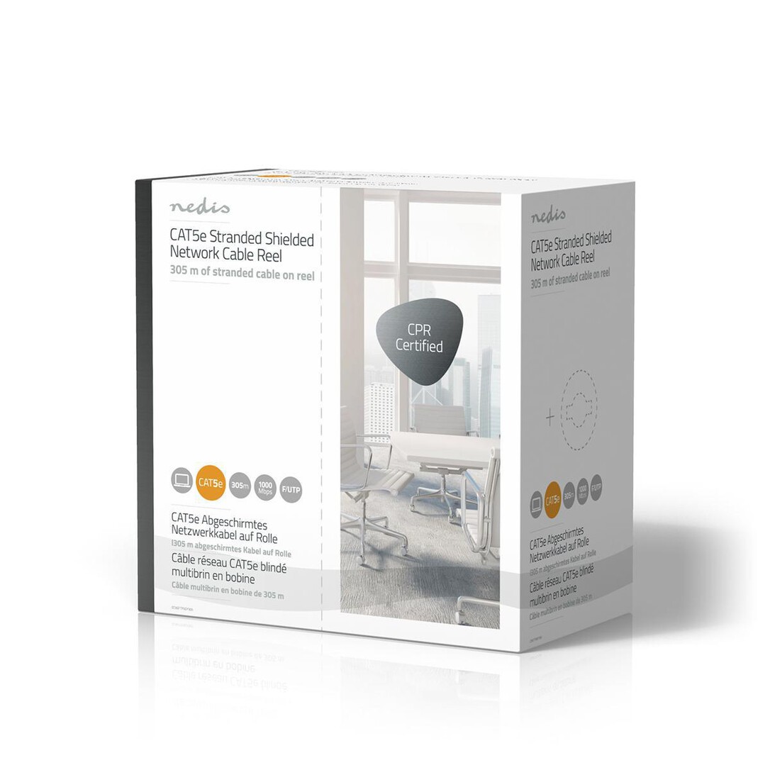 Nedis CAT5e Netzwerkkabel Rolle / Stranded / F/UTP / Kupfer / 305 m / Innen / Rund / PVC / Grau / Pull Box - ausziehbar