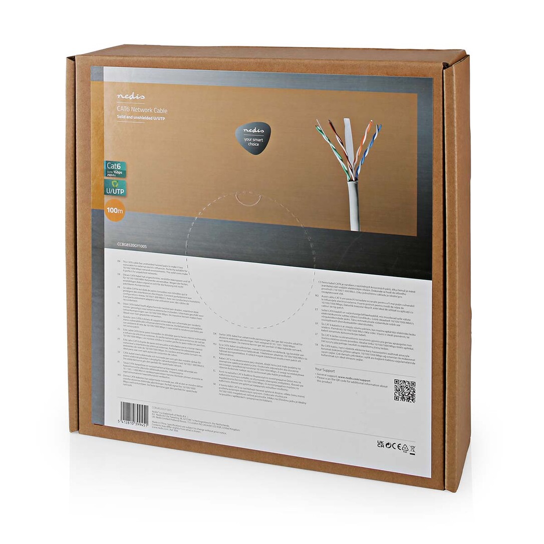 Nedis CAT6 Netzwerkkabel Rolle / Solid / U/UTP / CCA / 100 m / Innen / Rund / PVC / Grau / Pull Box - ausziehbar