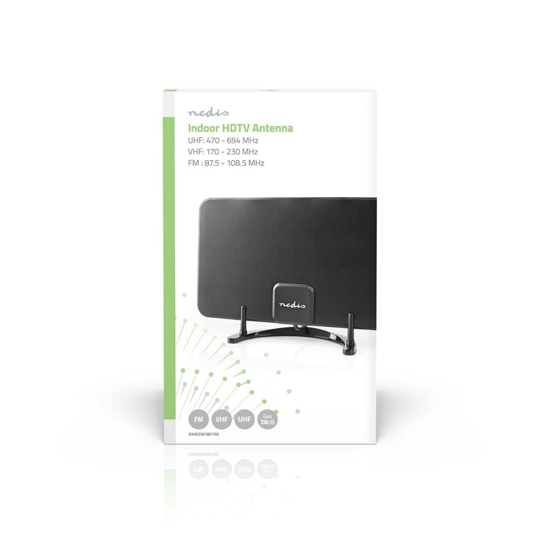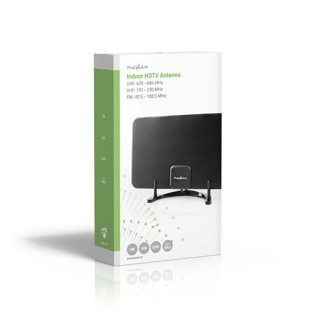Nedis Innenantenne / Aktiv / FM / UHF / VHF / Empfangsbereich: 0-25 km / LTE700 / Verstärkung dBi (bei Antennenkabel): 26 dB / ABS / Schwarz