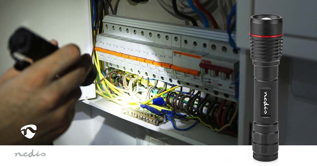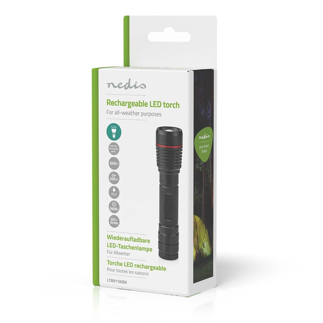 Nedis LED-Taschenlampe / Batteriebetrieben / 3.7 V DC / 10 W / N/A / Batterien enthalten / Wiederaufladbar / Nennlichtstrom: 1000 lm / Lichtbereich: 200 m / Strahlungswinkel: 10 °