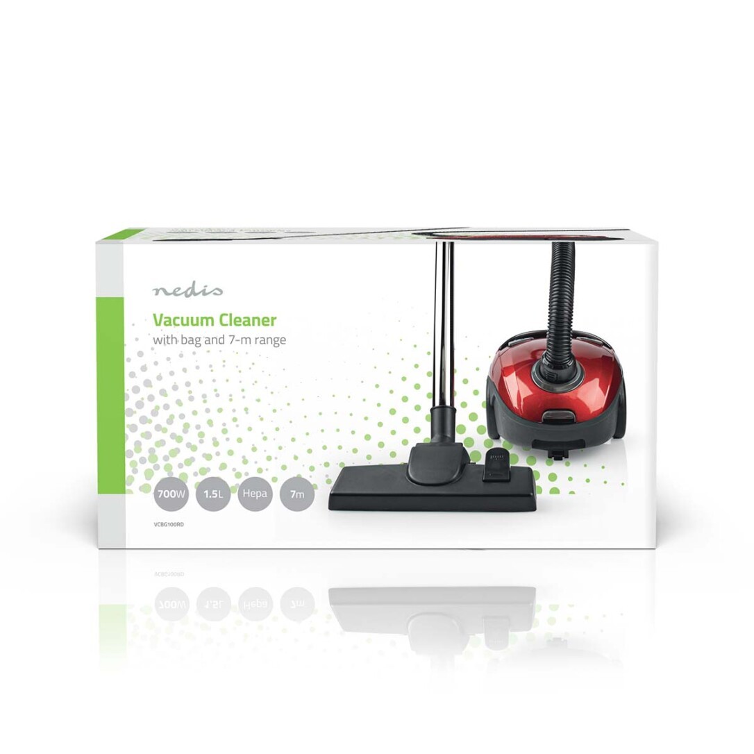 Nedis Multipack Staubsauger mit Beutel / Mit Beutel / 700 W / Staubkapazität: 1.5 l / Kombi-Bürste / Aktionsradius: 7 m / Hepa / Anthrazit / Red - 4 Stück