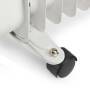 Tragbarer Ölheizkörper, der als praktische zusätzliche Heizquelle dient, ist leise und effizient. Der Heizkörper kann in 3 Leistungsstufen eingestellt werden, und mit dem Thermostat ist die Temperatur nach Wunsch einstellbar. Durch die laufruhigen Rollen und den Handgriff lässt sich der Heizkörper einfach bewegen - mobil und kompakt. Einschließlich Kabelführungssystem zum ordentlichen und sicheren Verstauen des Kabels und mit Kippschutz für zusätzliche Sicherheit.