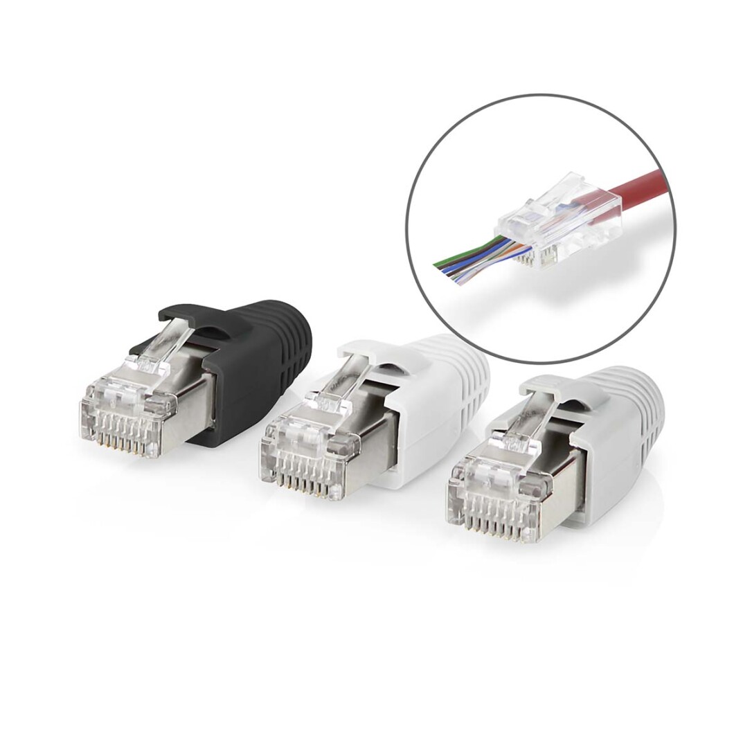 Nedis RJ45-Stecker / RJ45 Pass Through / Festes/verseiltes FTP CAT6a / Gerade / Vergoldet / 10 Stück / Polycarbonate / Grau / Schwarz / Weiss / Box