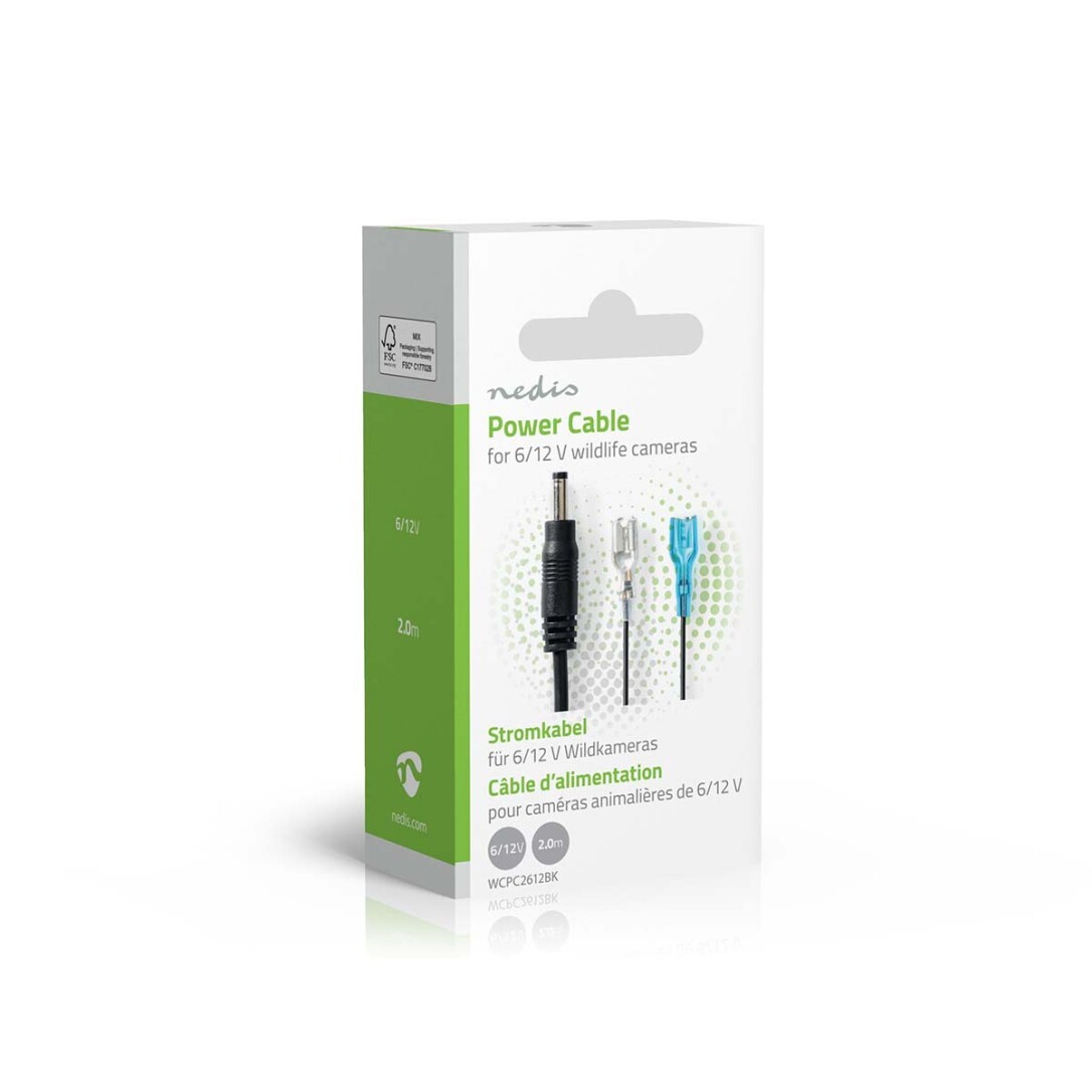 This 6/12V battery power cable for an external battery enables the wildlife camera to be connected to an additional battery. The small and round connector is suitable with all 6/12V external power source compatible wildlife cameras. The cable length is 2 meters and it has connectors ready for the poles marked with the corresponding colour codes of the battery. The operating time of the trail camera is significantly longer and you save batteries.For WCAM180GN and WCAM280GN