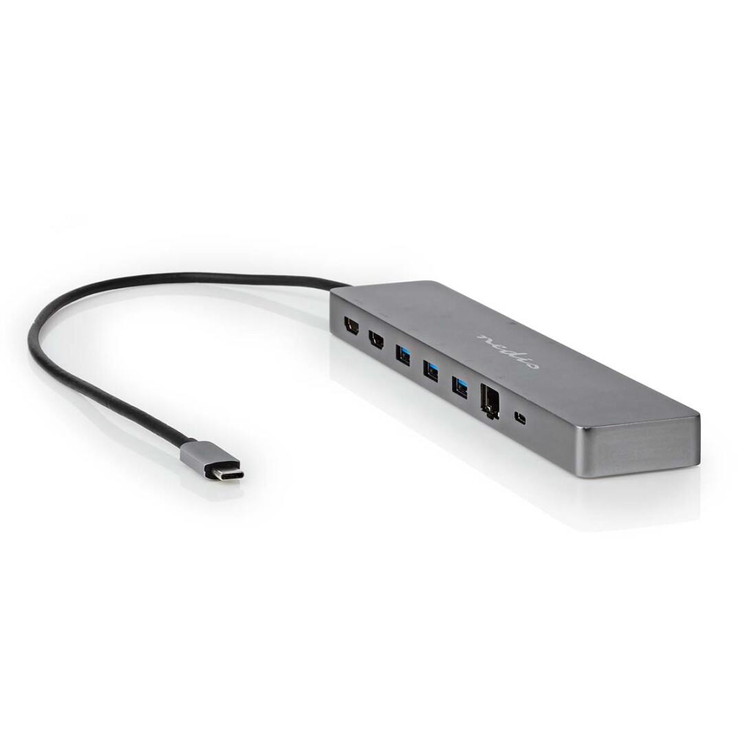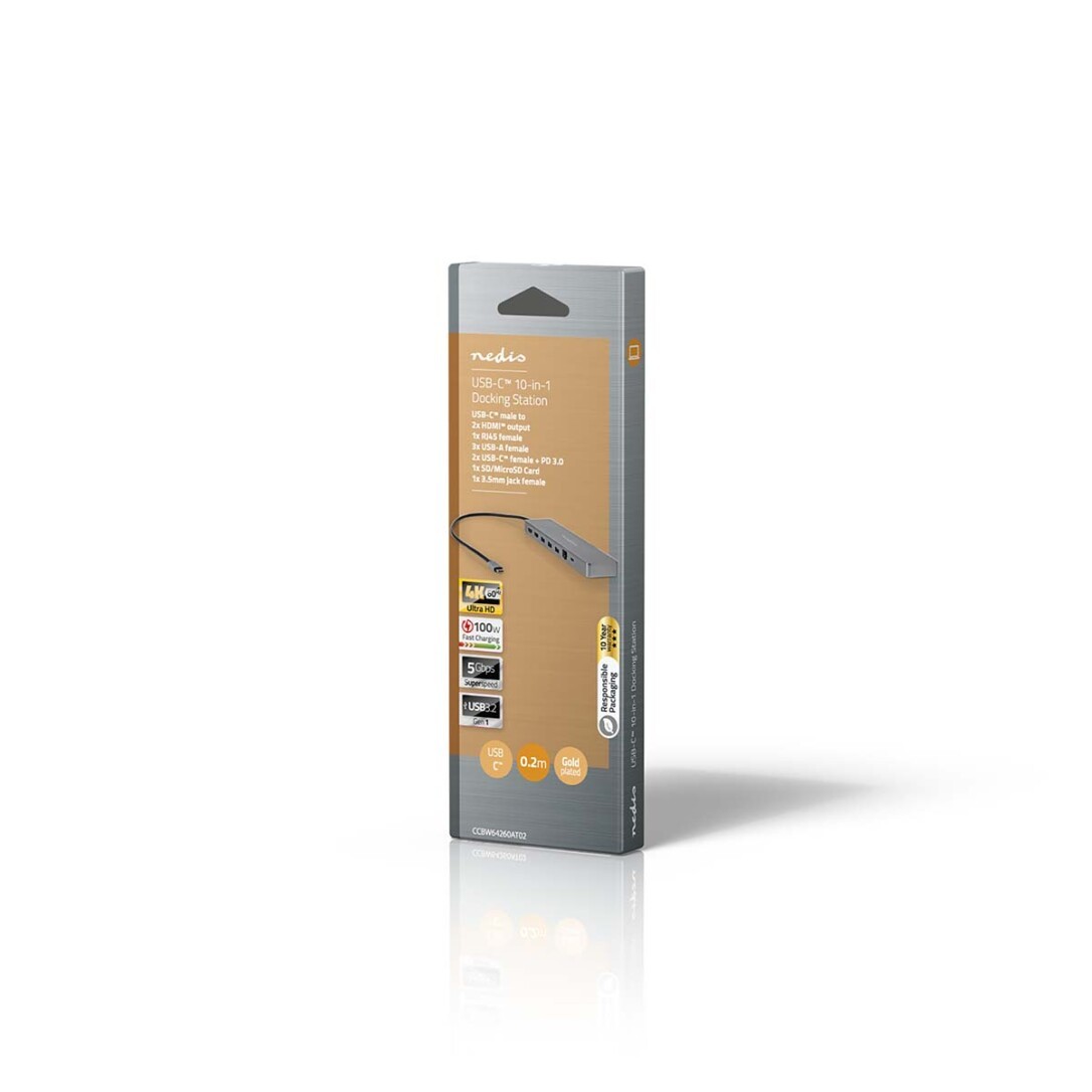Nedis USB Multi-Port-Adapter / 10-in-1 / USB 3.2 Gen 1 / USB-C™ Stecker / Micro SD / RJ45 Buchse / SD / 2x HDMI™ / 2x USB-C™ / 3x USB-A Buchse / 0.40 m / Rund / Vergoldet / TPE / Anthrazit / Box