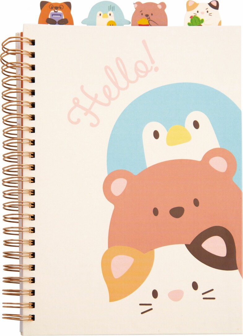 Bring Farbe und Freude in deinen Alltag mit dem mymochi Spiral Notizbuch im bezaubernden Hello'' Design! Dieses liebevoll gestaltete Spiralbuch bietet auf 80 Blatt hochwertigem 80g Papier Platz für Gedanken, Ideen und kreativen Skizzen. Highlight sind die vier farbenfrohen Register-Abschnitte Fuchs Geeks, Pinguin Waddle, Bär Nomo und Katze Angy im niedlichen mymochi Charakter-Design und die unterschiedlich gestalteten Innenseiten, deren Papiergestaltung mit jedem Register wechselt. Dank der praktischen Spiralbindung kann das Notizbuch ganz einfach aufgeschlagen und umgeblättert werden, ohne dass es sich verzieht. Die robuste Qualität des Papiers sorgt dafür, dass Notizen klar und leserlich bleiben perfekt für Stifte aller Art!''