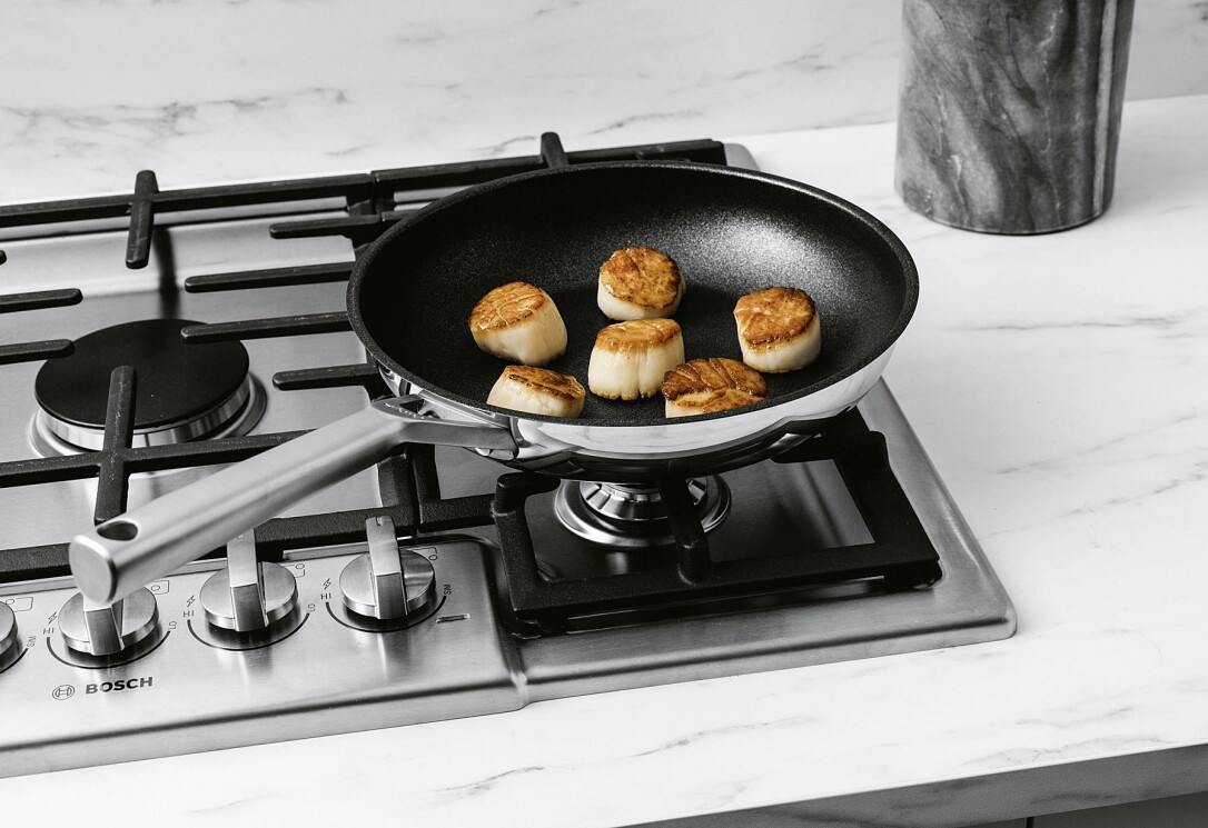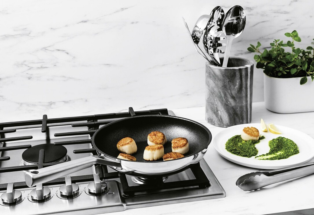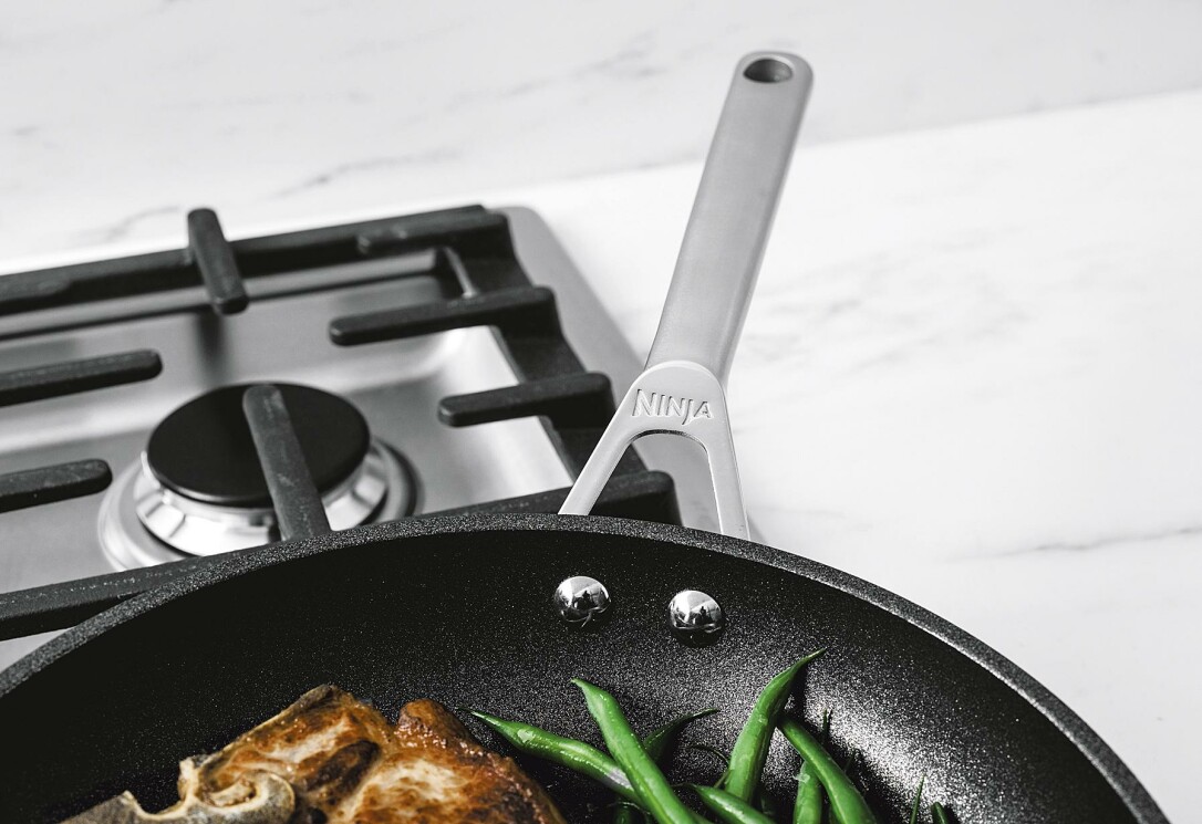 NINJA Bratpfanne "Zerostick" aus Edelstahl, Ø 24 cm, H 8,8 cm - kein verkratzen oder abplatzen mehr durch einzigartige Antihaftbeschichtung, auch für Pfannenwender aus Metall geeignet, für alle Herdarten geeignet (geeignet für einen 17,75 cm Induktionsring), backofenfest bis zu 260°C, spülmaschinenfest.