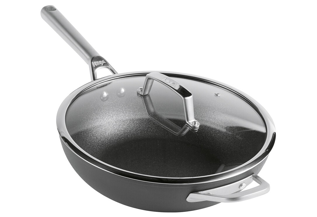 NINJA Wok "Foodi Zerostick Premium" Ø 28 cm,geschmiedetes Aluminium mit harteloxierter Außenseite, kein verkratzen oder abplatzen mehr durch einzigartige Antihaftbeschichtung, auch für Pfannenwender aus Metall geeignet, garen mit wenig oder keinem Fett, ohne Anhaften, für alle Herdarten geeignet, Ø 20 cm Induktionsring, Ofen & Grillbenutzung bis zu 260°C, spülmaschinenfest. Maße: Ø 28 cm, H 14, 5 cm.