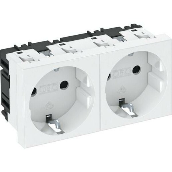 Modul 45 Steckdose 2fach mit 0° Steckrichtung, mit Verbindungsklemmen nach IEC 60884-1.