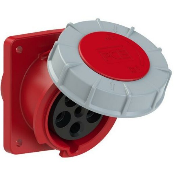 Power Twist Anbausteckdose schräg, 63A 5p 6h IP66/67, mit Lamellenkontakt und Rahmenklemme, Flansch: 100x112, Lochabst.: 80x88
