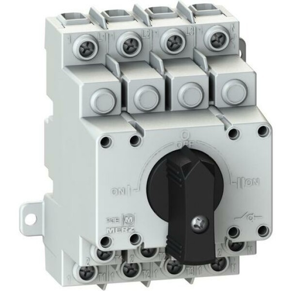 Der 4-polige Transferschalter mit einer Nennstromstärke von 35 A ist für die Montage auf Normschienen oder Montageplatten geeignet. Er entspricht der Norm DIN EN 60947-6-1 und dient dazu, eine Last mit zwei verschiedenen Spannungsquellen zu versorgen. Der Schalter verfügt über drei mechanisch gegeneinander verriegelte Schaltstellungen: I, 0 und II.