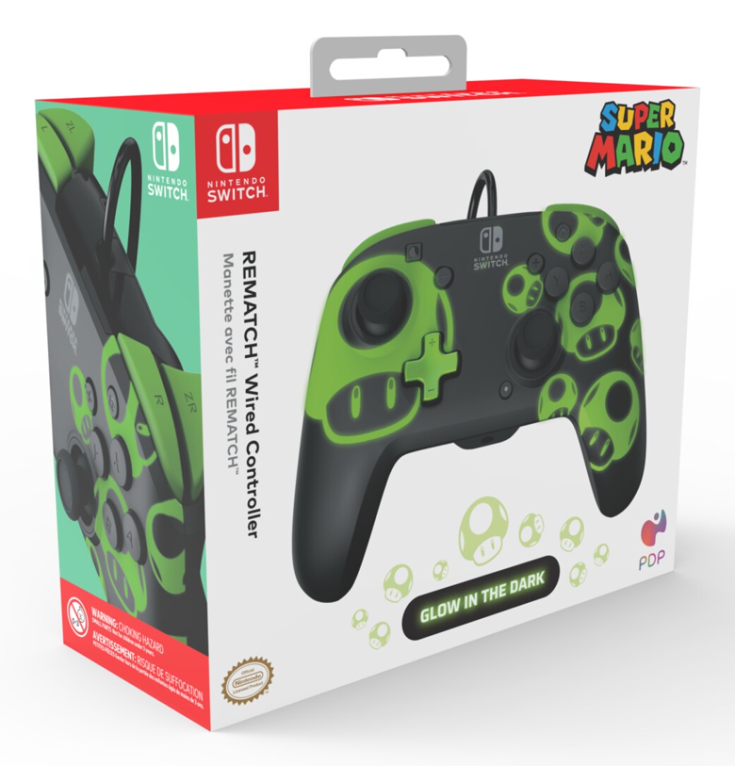 PDP REMATCH: 1-Up Glow in the Dark, Gamepad, Nintendo Switch, Nintendo Switch OLED, D-Pad, Home button, Analog / Digital, Kabelgebunden, USB