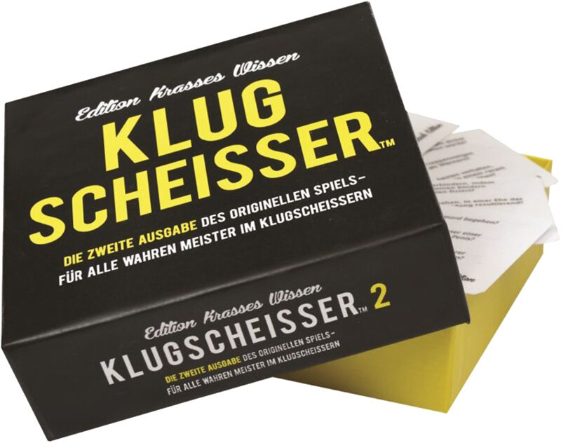 Noch verrückter! Noch abgefahrener! Die zweite Version des populären Gesellschaftsspiels Klugscheisser! Welcher Teil des menschlichen Körpers schmeckt nach Meinung der Kannibalen am besten? Und was passiert, wenn ein Mann Antibabypillen schluckt? Klugscheisser - Black Edition ist das perfekte Spiel für alle, die Fragespiele rund um den x-ten Nobelpreisträger, Hauptstädte der Welt und Schriftsteller des 19. Jahrhunderts langweilen. Das perfekte Spiel für jeden Fan von sinnlosem Wissen und schrägen Fakten!Ein unterhaltsamer Mix aus Humor und Wissenschaft mit mehr als 300 kuriosen, lustigen, verrückten und bizarren Fragen zu Dingen, über die Du Dir wahrscheinlich noch niemals Gedanken gemacht hast! Sei gefasst auf jede Menge absurde Schätzungen und lustige Antworten! Überrasche Freunde und Bekannte mit schrägem Wissen, das Dir keiner zugetraut hätte! Ein ideales Geschenk und Mitbringsel für jede Gelegenheit, lustige Partys und gesellige Abende!