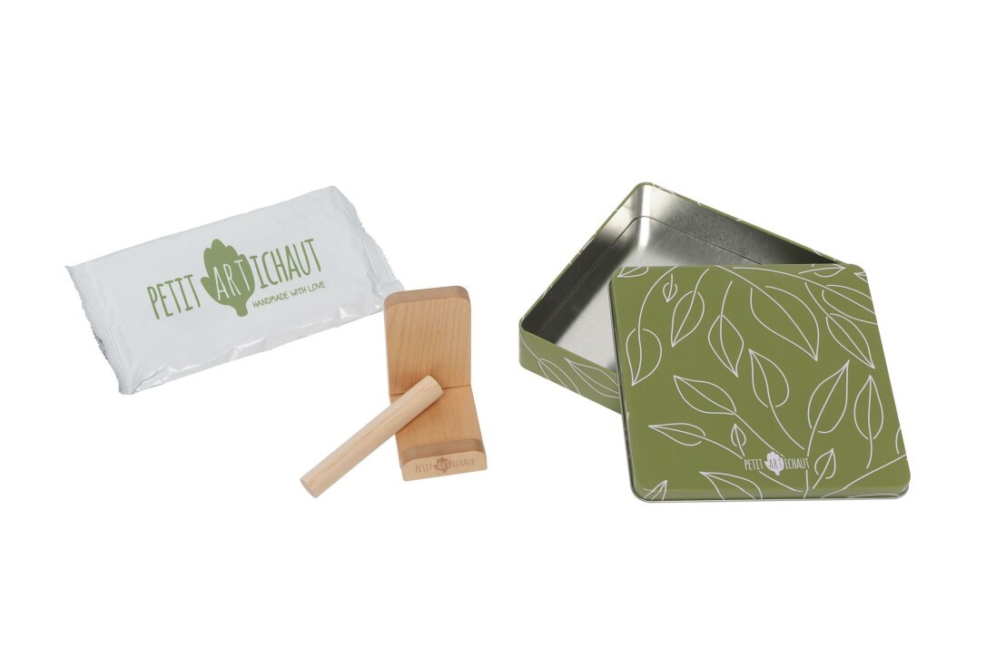 ArtikeleigenschaftenBlech, Tonmasse | einfach die Modelliermasse in der Dose ausrollen und Hand oder Fuß verewigen