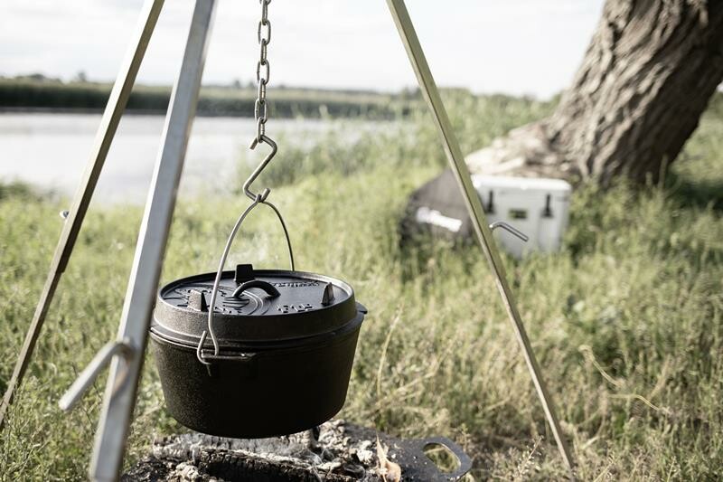 Durch die hervorragenden Eigenschaften des Gusseisens und die spezielle Oberflächenstruktur wird die Wärme effizient gespeichert und weitergeleitet. Die vorbehandelte Oberfläche (seasoned finish) macht ein erstmaliges Einbrennen unnötig und der robuste Feuertopf kann sofort verwendet werden. Im Freien wird er auf dem offenen Feuer oder mit Holzkohle verwendet. Der erhöhte Rand des Deckels ermöglicht es, Glut oder Holzkohle auch auf dem Feuertopf zu platzieren. So wird der Feuertopf von allen Seiten beheizt und eignet sich beispielsweise auch zum Brot backen.