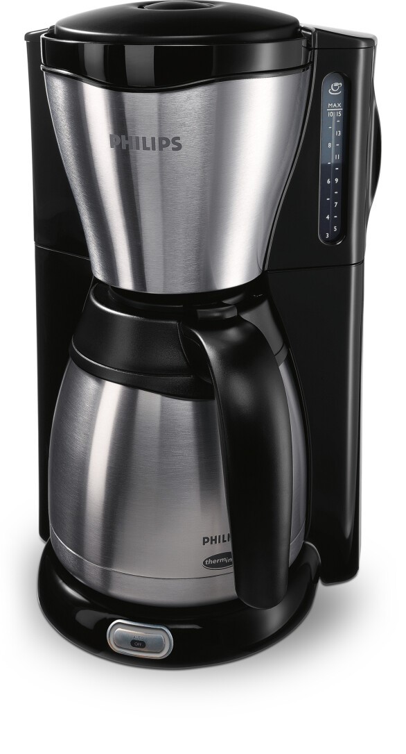 Philips Café Gaia Collection Café Gaia HD7546/20 Filterkaffeemaschine, Thermoskanne. Produkttyp: Filterkaffeemaschine, Fassungsvermögen Wassertank: 1,2 l, Kaffee-Einfüllart: Gemahlener Kaffee, Kapazität (in Tassen): 15 Tassen. Leistung: 1000 W. Produktfarbe: Schwarz