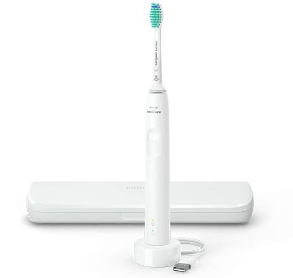 Philips 3100 series HX3673/13 Elektrische Schallzahnbürste + Reiseetui - Weiß. Zweck: Erwachsener, Zahnbürstentyp: Schallzahnbürste, Zahnbürsten Modi: Tägliche Pflege. Energiequelle: Akku, Akku-/Batterietyp: Integrierte Batterie, Akku-/Batterietechnologie: Lithium-Ion (Li-Ion). Anzahl enthaltener Griffe: 1 Stück(e), Anzahl enthaltener Bürstenköpfe: 1 Stück(e)