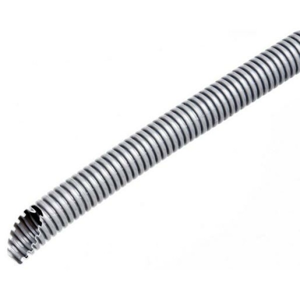 Biegsames Elektroinstallationsrohr für mittlere mechanische Beanspruchung, grau ähnlich RAL 7037, gewellt, schlagfest, aus PVC-hart. Geprüft nach ÖVE EN 50086-2-2, ÖNORM E 6544 Klassifizierung EN 3341 Scheiteldruckfestigkeit >750N Temperaturbereich -25