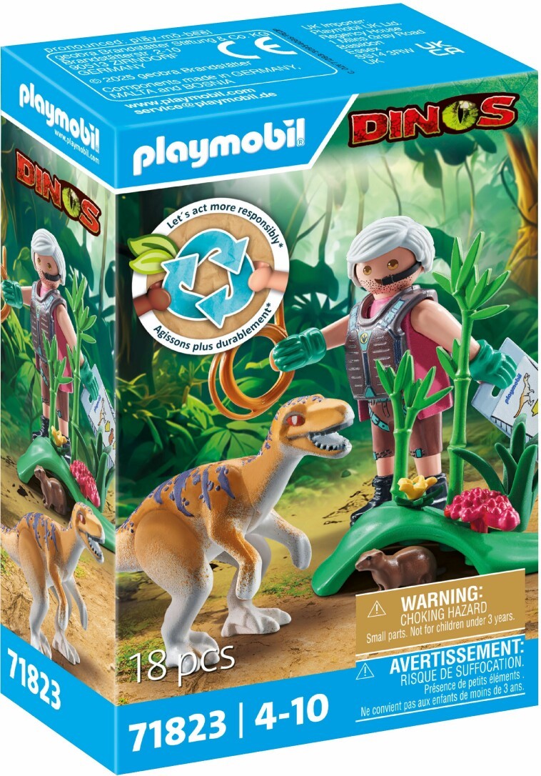 Ein gefährlicher Velociraptor hat es auf ein kleines Nager-Säugetier abgesehen, das sich geschickt in einem Erdhügel versteckt. Während der Dino-Forscher mit sich ringt, ob er in das Geschehen eingreifen soll, dokumentiert er das fesselnde Schauspiel der natürlichen Nahrungskette. Dabei ist er durch einen robusten Brustpanzer vor möglichen Angriffen des Velociraptors geschützt. Inklusive einer Dino-Wissenskarte.