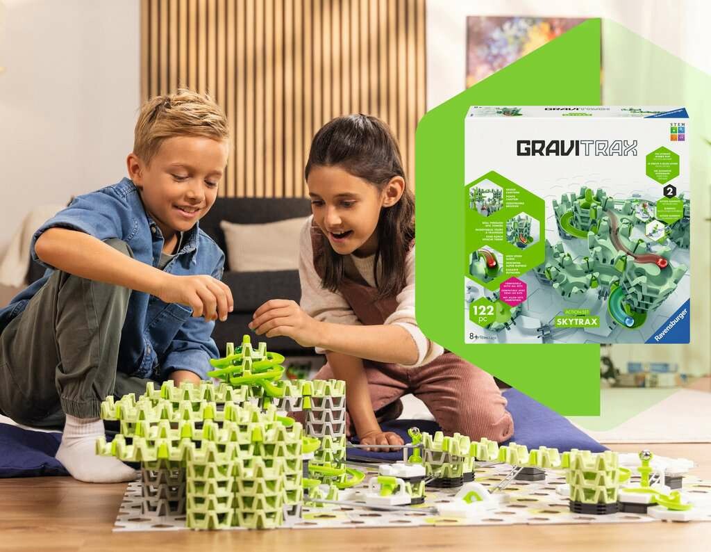 Das GraviTrax Action-Set Skytrax eröffnet neue Möglichkeiten im GraviTrax Universum! Skytrax bietet spektakulären Bauspaß mit neuen Funktionen.Mit dem GraviTrax Action-Set Skytrax erlebst du kreativen Bauspaß auf einem neuen Level! Die innovativen Skytrax-Steine bieten aufregende Funktionen: Lass Kugeln durch die Steine fallen, fange sie auf und verbinde sie zu Brücken! Die Slides sorgen dafür, dass die Kugel mit Schwung und Action um die majestätischen Türme rast. Der Kreativität und dem Spaß sind keine Grenzen gesetzt perfekt für Abenteurer, die ein trickreiches Kugelbahn-Erlebnis voller neuer Möglichkeiten suchen!GraviTrax ist ein flexibel erweiterbares, interaktives Kugelbahnsystem für Kinder ab 8 Jahren: Mit GraviTrax bauen Kinder, Jugendliche und Erwachsene nicht nur einfache Kugelbahnen. Sie erschaffen einzigartige Kugelbahnwelten. Durch das freie Konzipieren der Kugelbahnen und das Erforschen des Rollverhaltens der Kugeln wird das Verständnis für Wissenschaft geschärft und Schwerkraft hautnah erlebbar. Das GraviTrax Universum beinhaltet drei spannende Linien CORE, PRO und POWER. Alle GraviTrax Linien und Produkte können frei miteinander kombiniert werden. Durch unzählige Erweiterungen mit klassischen Bauelementen oder Steine, die besondere Action und Tricks ermöglichen, lässt sich das GraviTrax-Universum unendlich vergrößern. So kann jeder individuell tüfteln, ausprobieren und über sich hinausbauen.