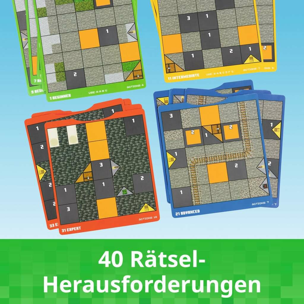 ThinkFun Minecraft Cave Adventure verwandelt Minecraft in ein praktisches Strategiespiel mit 40 Einzelrätseln. In diesem epischen Offline-Abenteuer zählt jeder Spielzug!Entdecke die aufregende Welt von Minecraft Cave Adventure! Nach langer Suche stoßen junge Abenteurer auf eine legendäre Höhle voller Schätze. Doch Vorsicht: Hinter jeder Ecke lauert Gefahr! Ziel ist es, einen durchgehenden Pfad durch die Höhle zu legen, Fackeln zu passieren, Kreaturen zu besiegen und die wertvolle Truhe zu erreichen. Mit 40 einzigartigen Herausforderungen, strategischem Gameplay und beliebten Minecraft-Elementen fördert das Spiel logisches Denken und sorgt für stundenlangen Spielspaß perfekt für Minecraft-Fans und alle, die gerne knobeln.Minecraft Cave Adventure kombiniert das bewährte Logikspiel-Design von ThinkFun mit dem weltweiten Phänomen Minecraft. Es fördert strategisches Denken, sequentielles Schlussfolgern und Kreativität und das alles im beliebten Pixel-Stil. Mit 40 verschiedenen Challenges ist es das perfekte Logikspiel für Spieler, die ihre Fähigkeiten offline verbessern möchten.