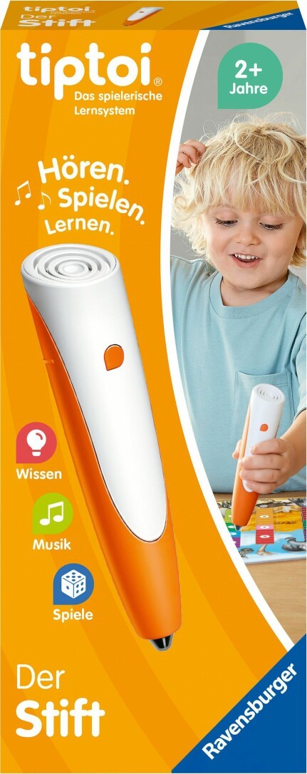 . Der tiptoi-Stift macht Bücher und Spiele lebendig. Für noch mehr tiptoi-Spaß sorgt die überragende Audioqualität des Stiftes, mit dem die Kinder jetzt in ein noch intensiveres Hörerlebnis eintauchen - interaktiv und eigenständig. Dank der Stifthülle aus Soft-Grip-Material liegt der Stift gut in der Kinderhand. Der integrierte Akku bietet mehr Komfort. Der tiptoi-Stift der 4. Generation ist mit allen tiptoi-Produkten kompatibel (abgesehen von den CREATE Produkten).Tippen, spielen, lernen! tiptoi macht Bücher und Spiele lebendig. Tippen die Kinder mit dem Stift auf Bilder und Texte, erklingen Geräusche, Sprache und Musik. So macht Lernen richtig Spaß! Das tiptoi-Sortiment umfasst Bücher und Spiele mit den wichtigsten Lern- und Wissensthemen für Kinder ab 2 Jahren. Die zugehörigen Audiodateien lädt man einfach, sicher und schnell über den tiptoi Manager oder die optional erhältliche Ladestation auf den Stift.